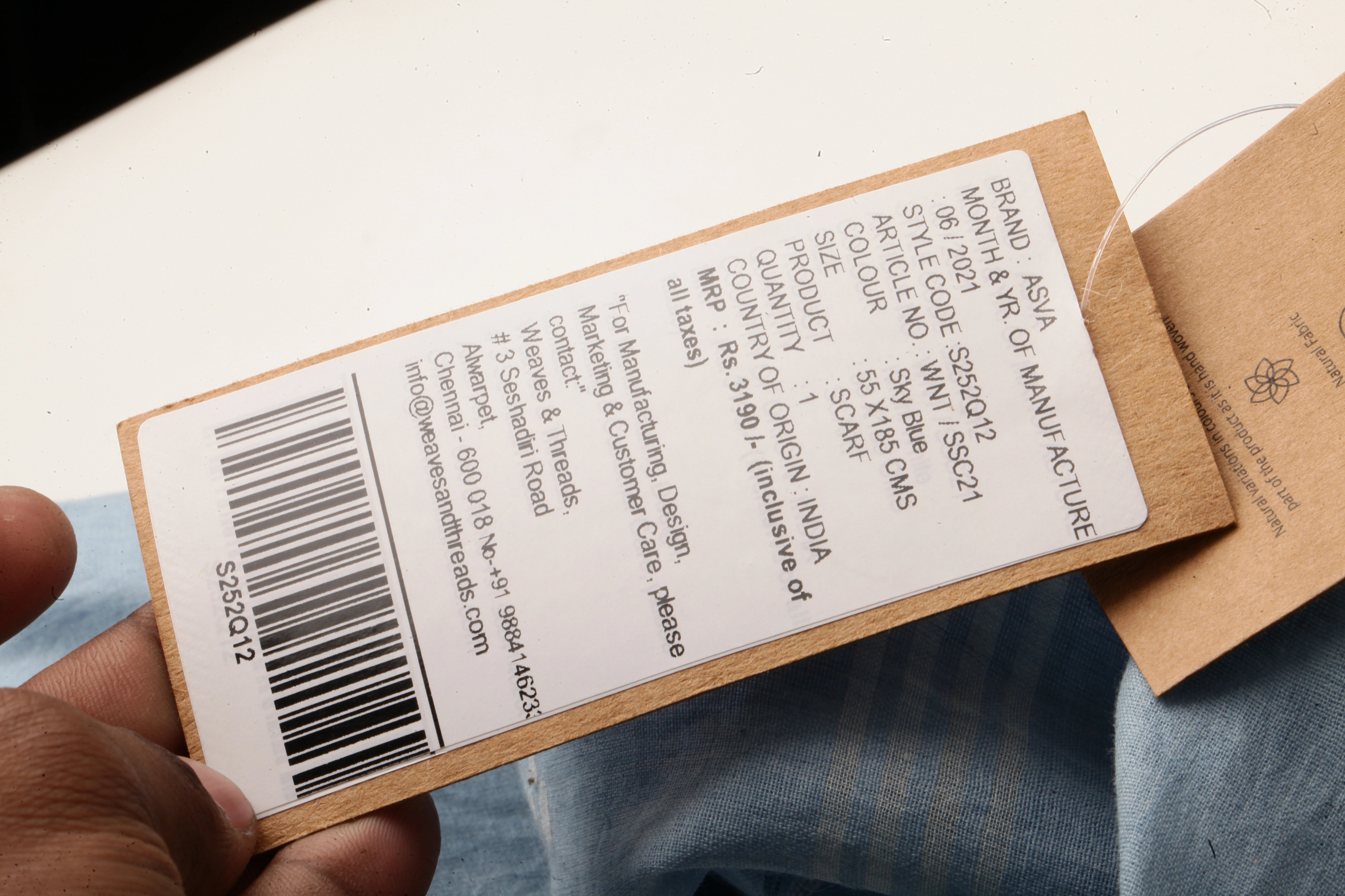 ASVA Blue Handwoven Cotton Scarf with Flower Butta Jamdani Work