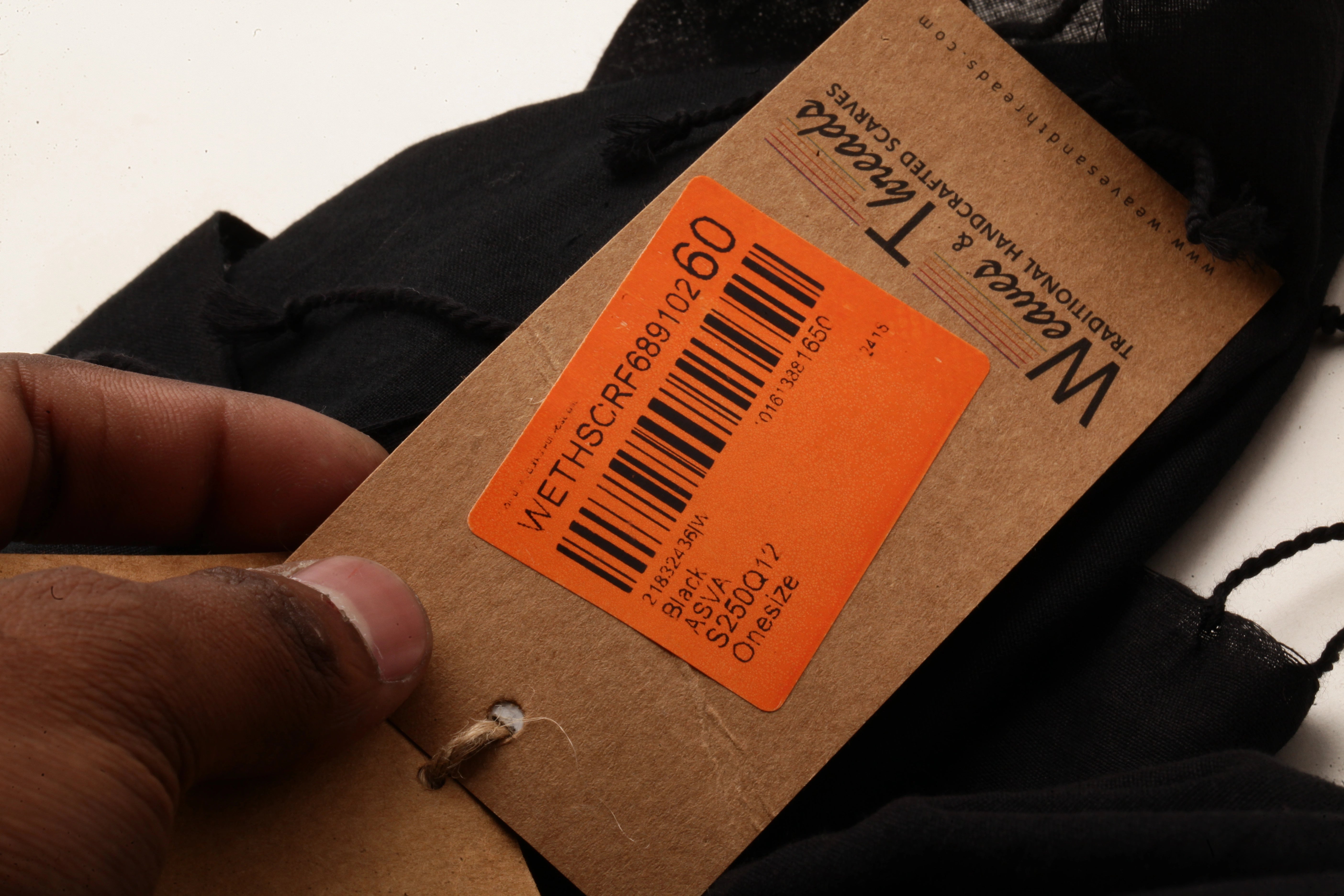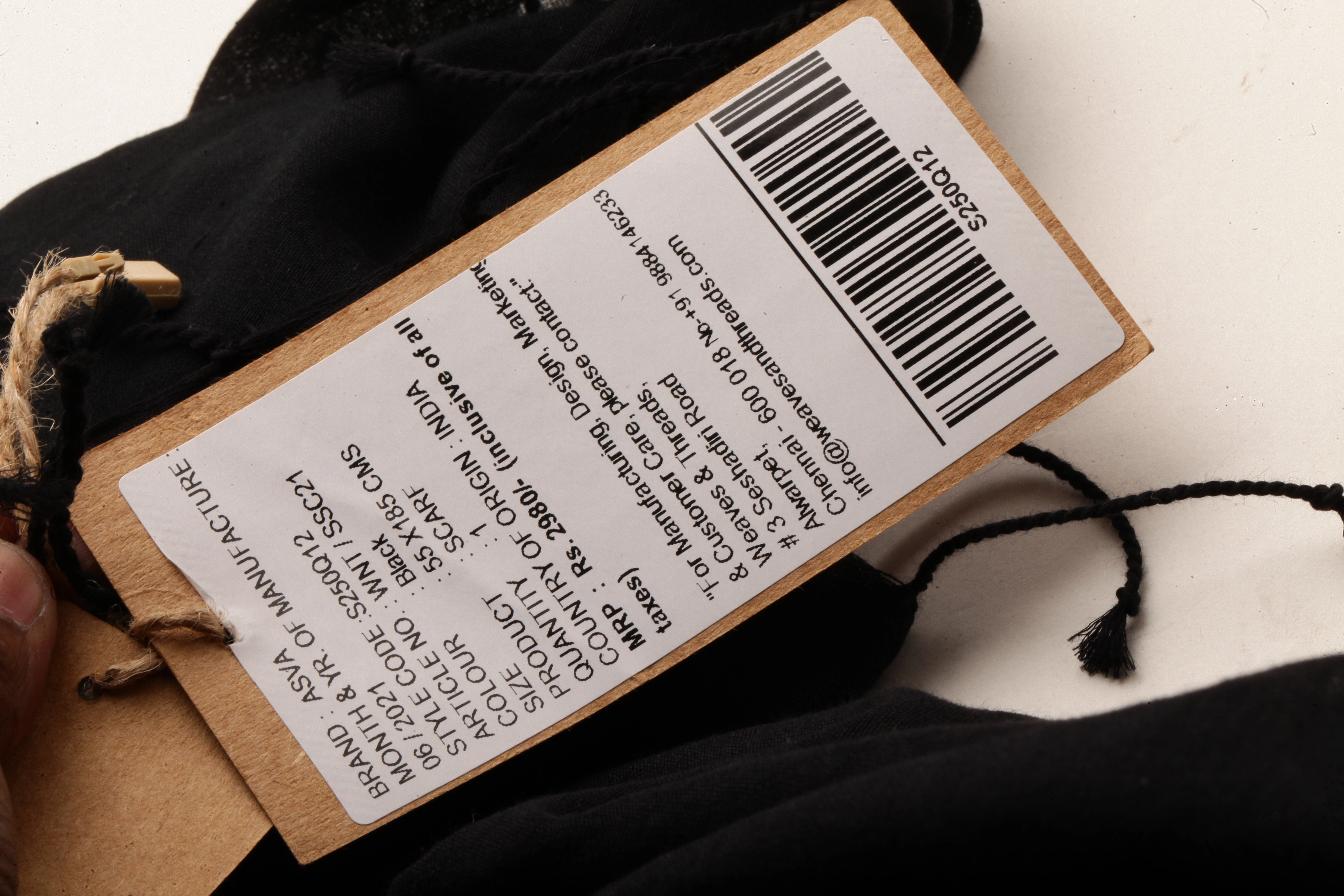 ASVA Handwoven Black Pure Cotton Scarf with All-Over Leaf Jamdani Work