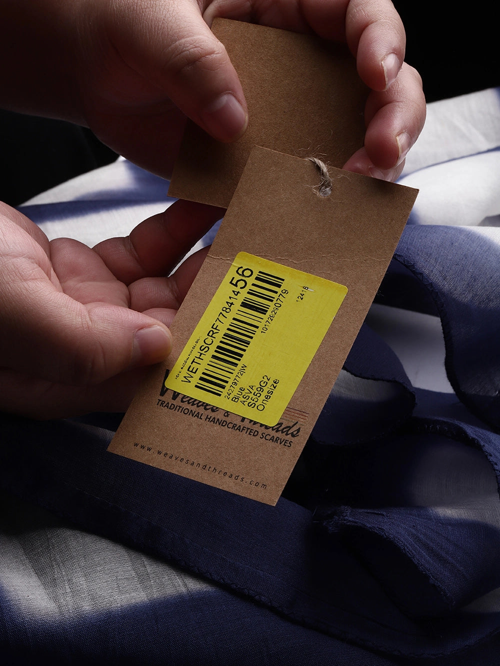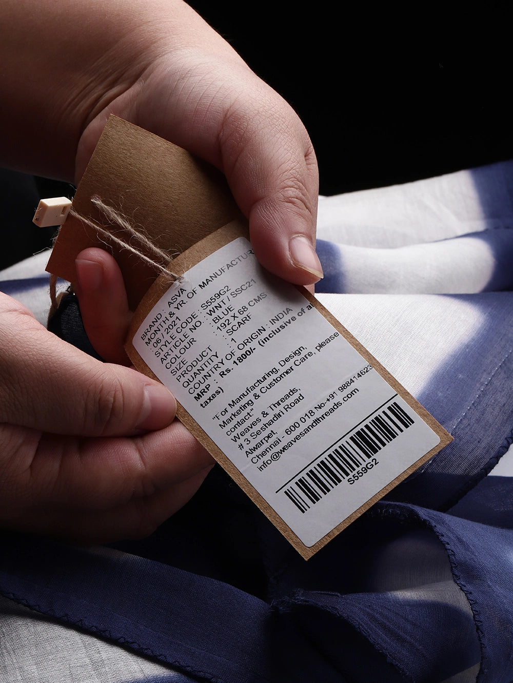 ASVA Handwoven Chanderi Silk Blue and White Shibori Dyed Scarf