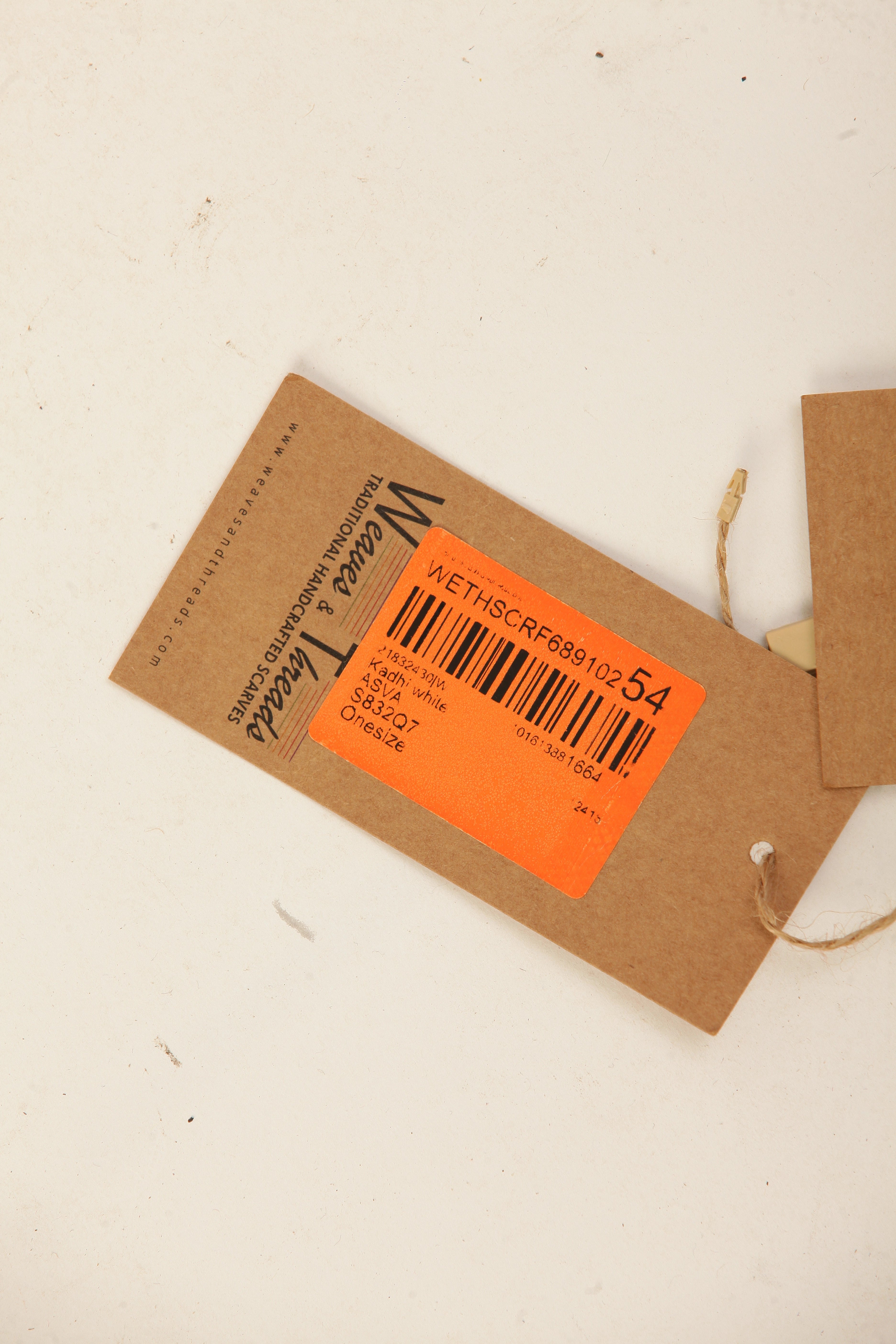 ASVA Handwoven Off-White Khadi Cotton Scarf with Blue Center Stripes and Selvedge
