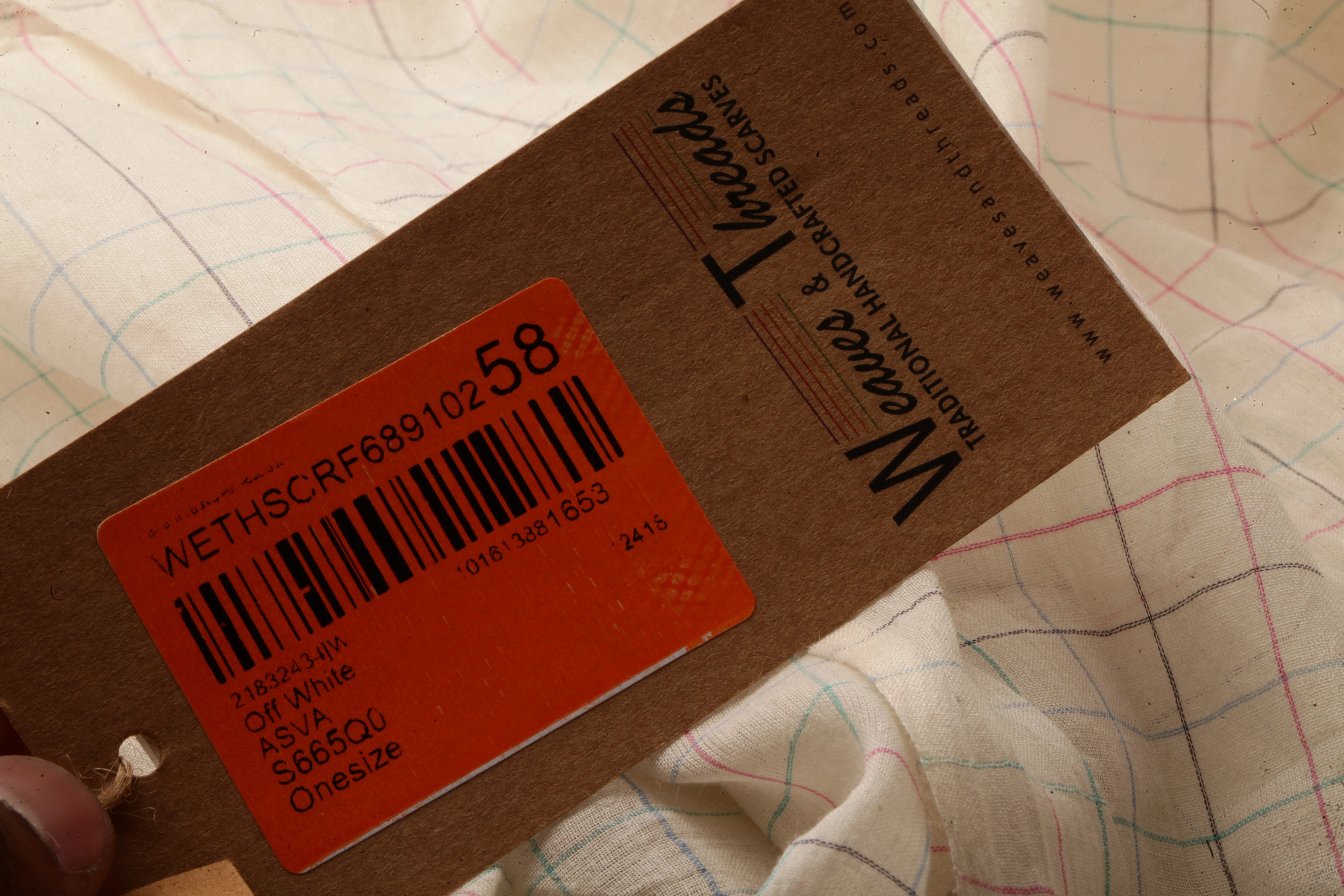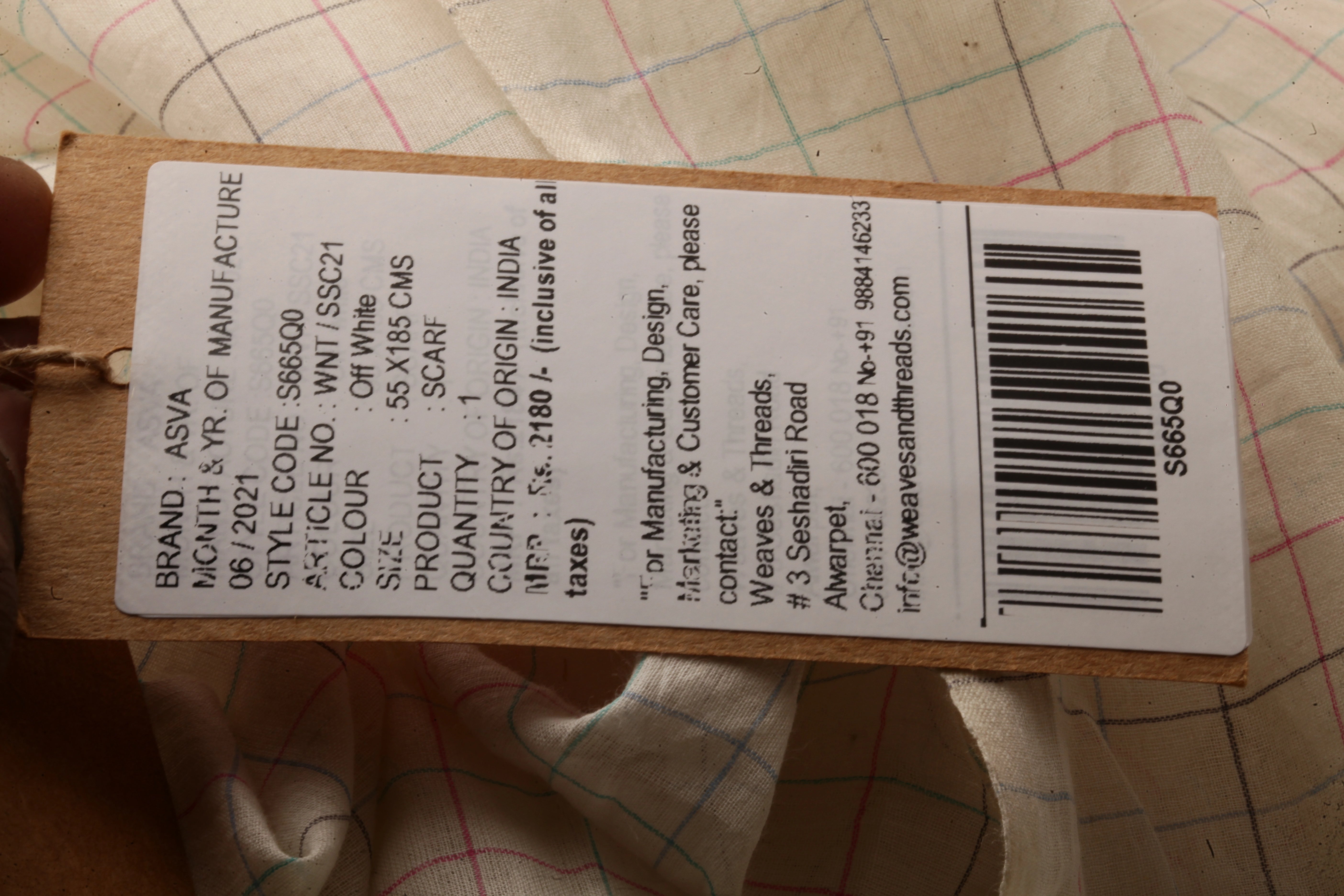 ASVA Handwoven Off-White Organic Cotton Scarf with Multicolor Checks