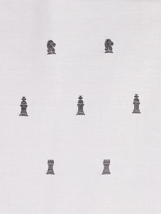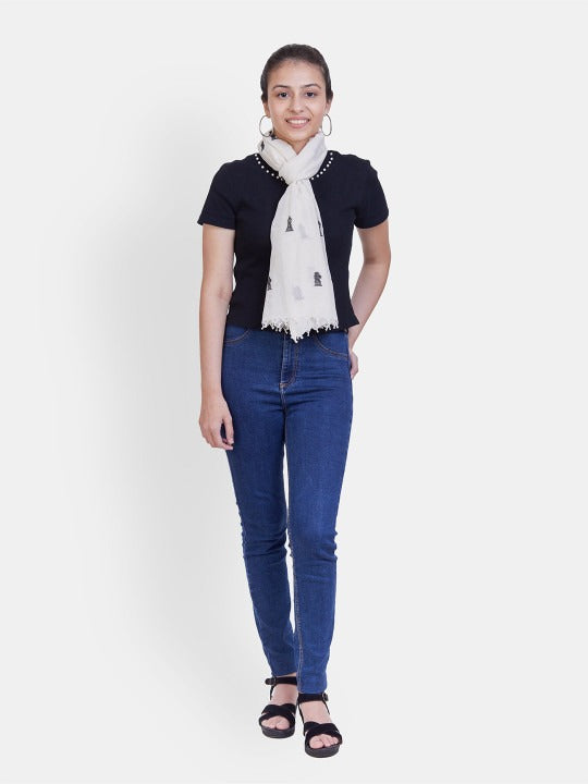 ASVA Women's Handwoven Off-White Cotton Scarf with Chess-Design Jamdani Work