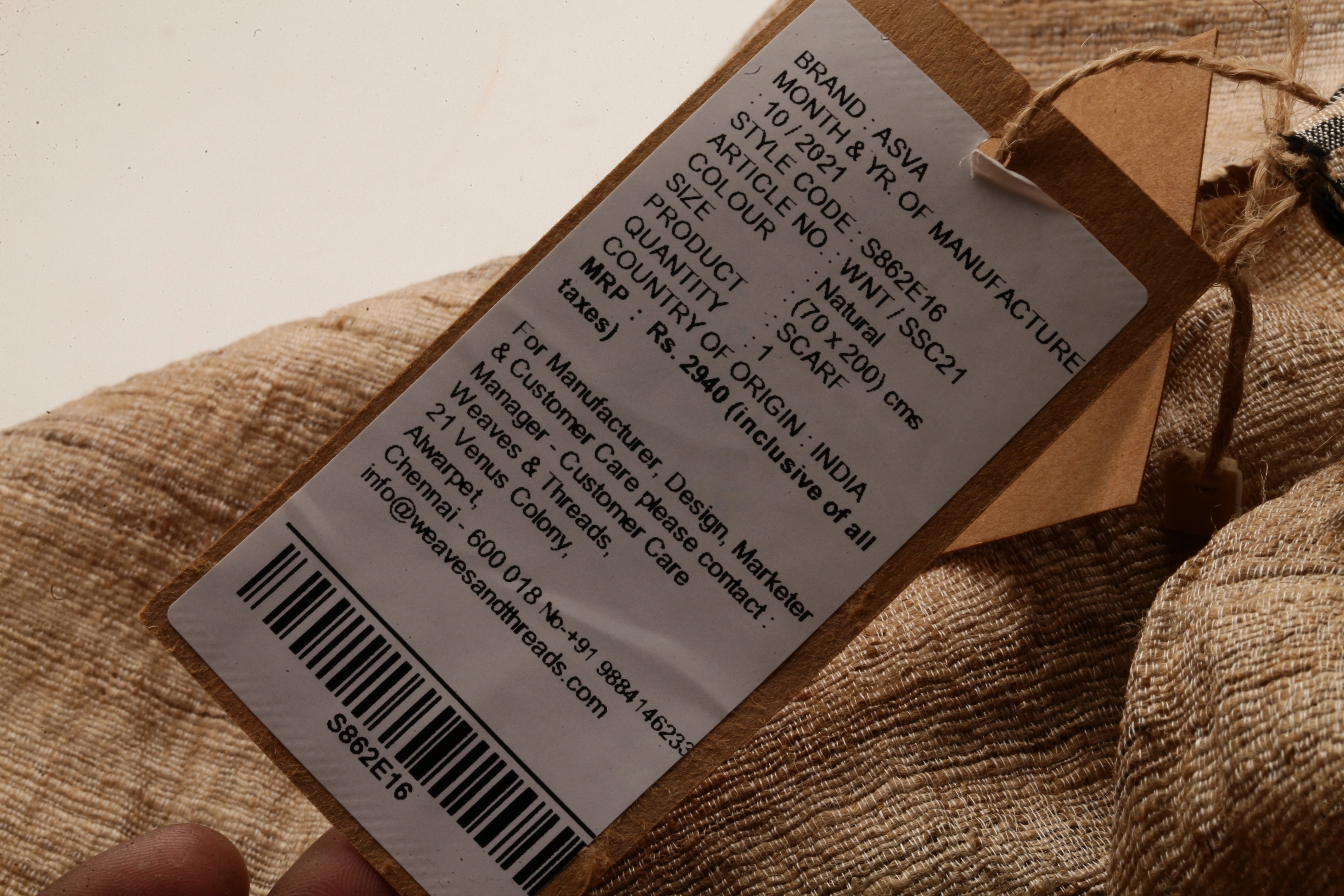 ASVA Tussar Silk Scarf with Black Striped Border and Tassels