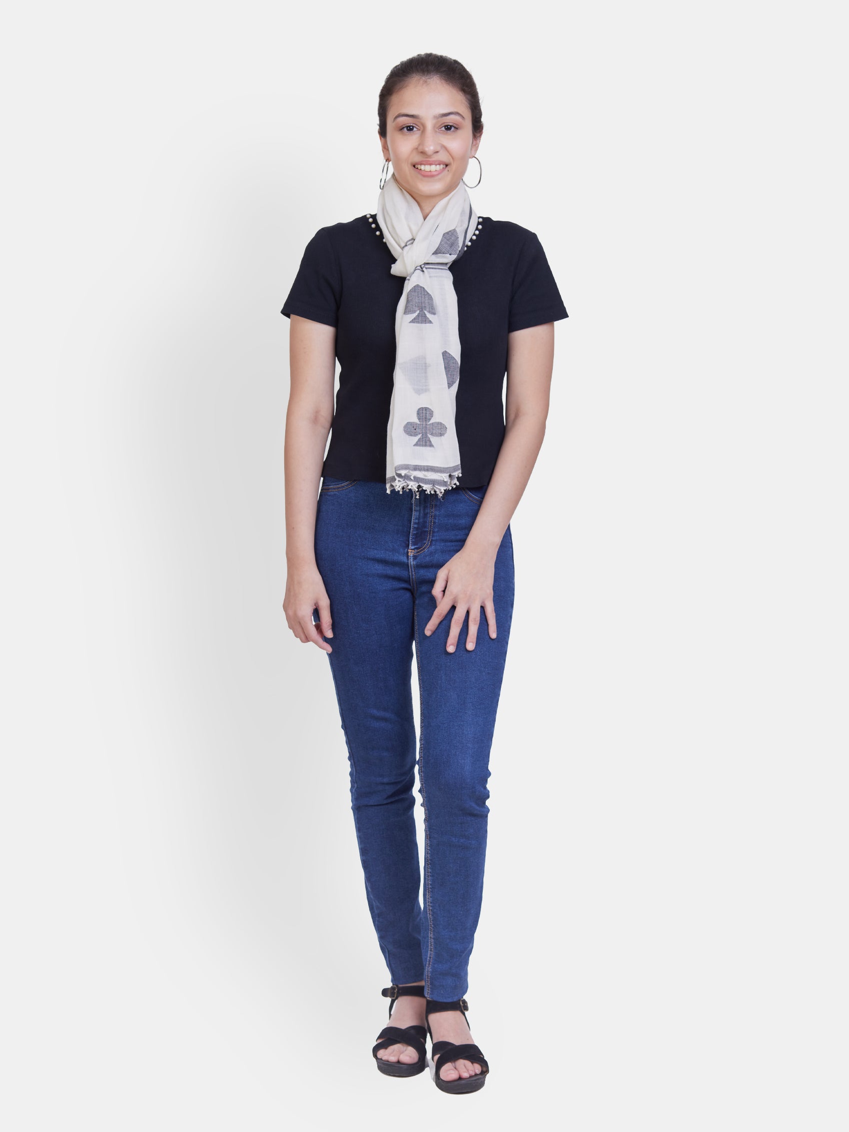 ASVA White Cotton Scarf for Women | Handwoven Deck of Cards Jamdani