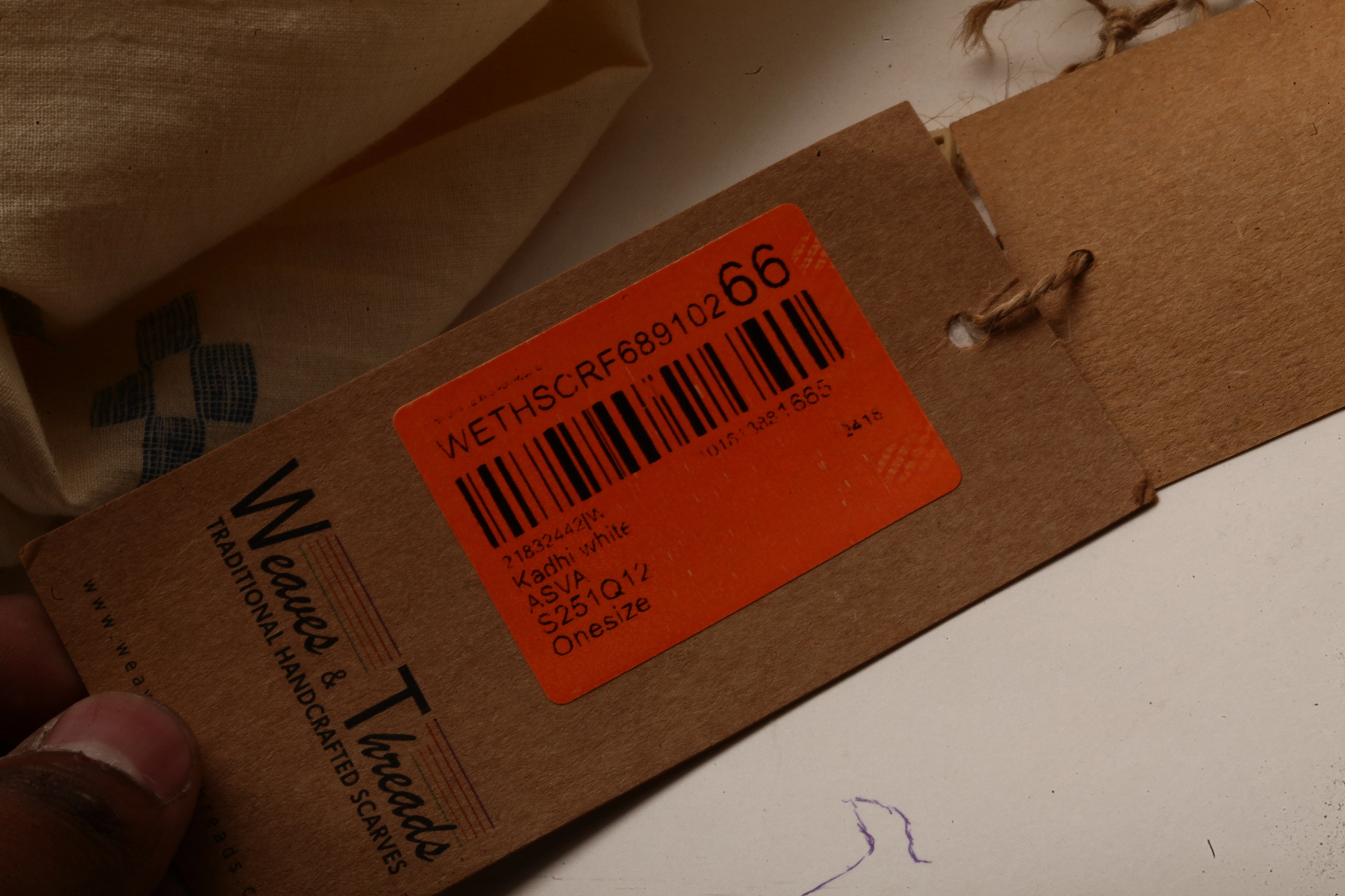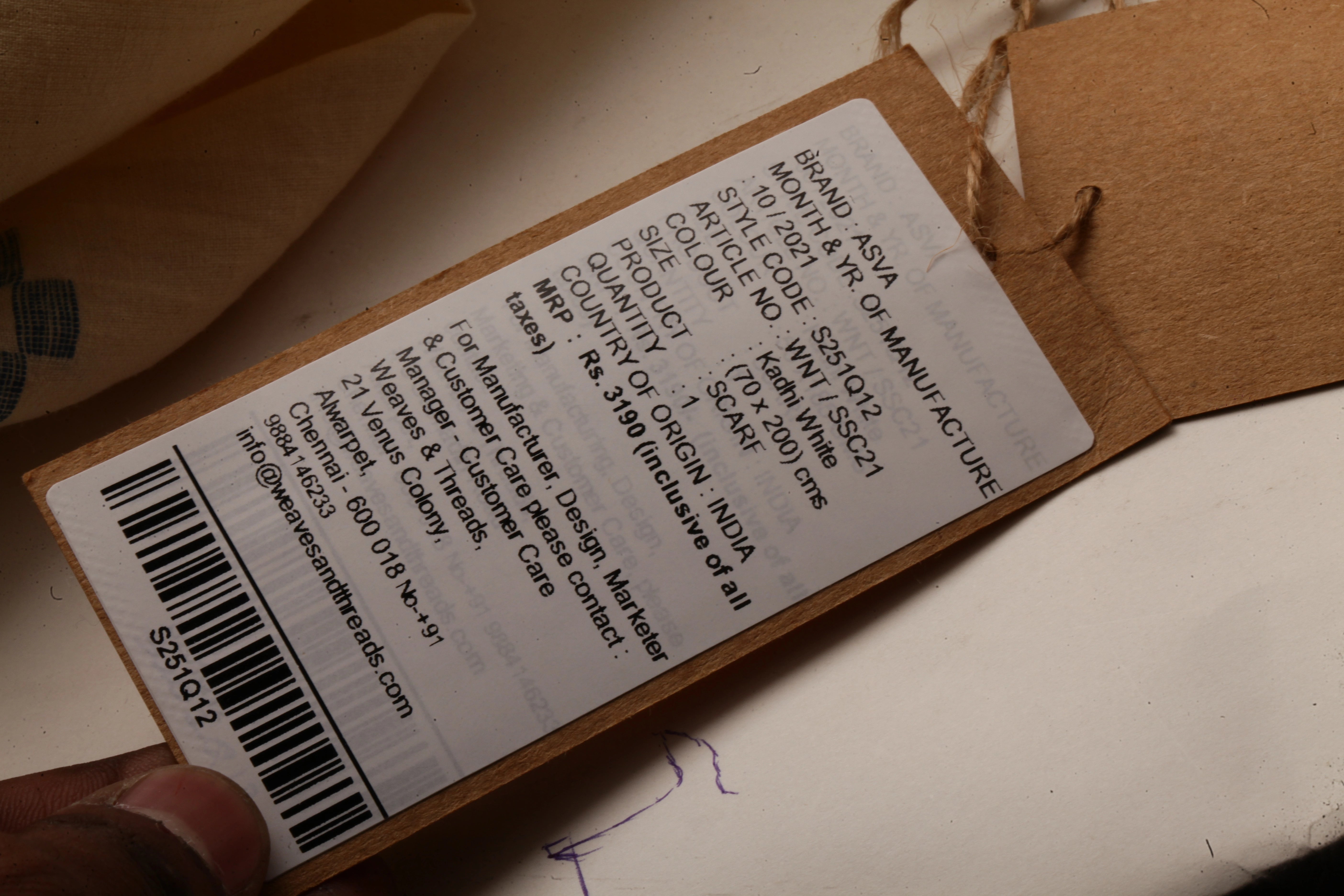 ASVA Women's Cream Khadi Cotton Scarf with Blue Border and all over Jamdani Work