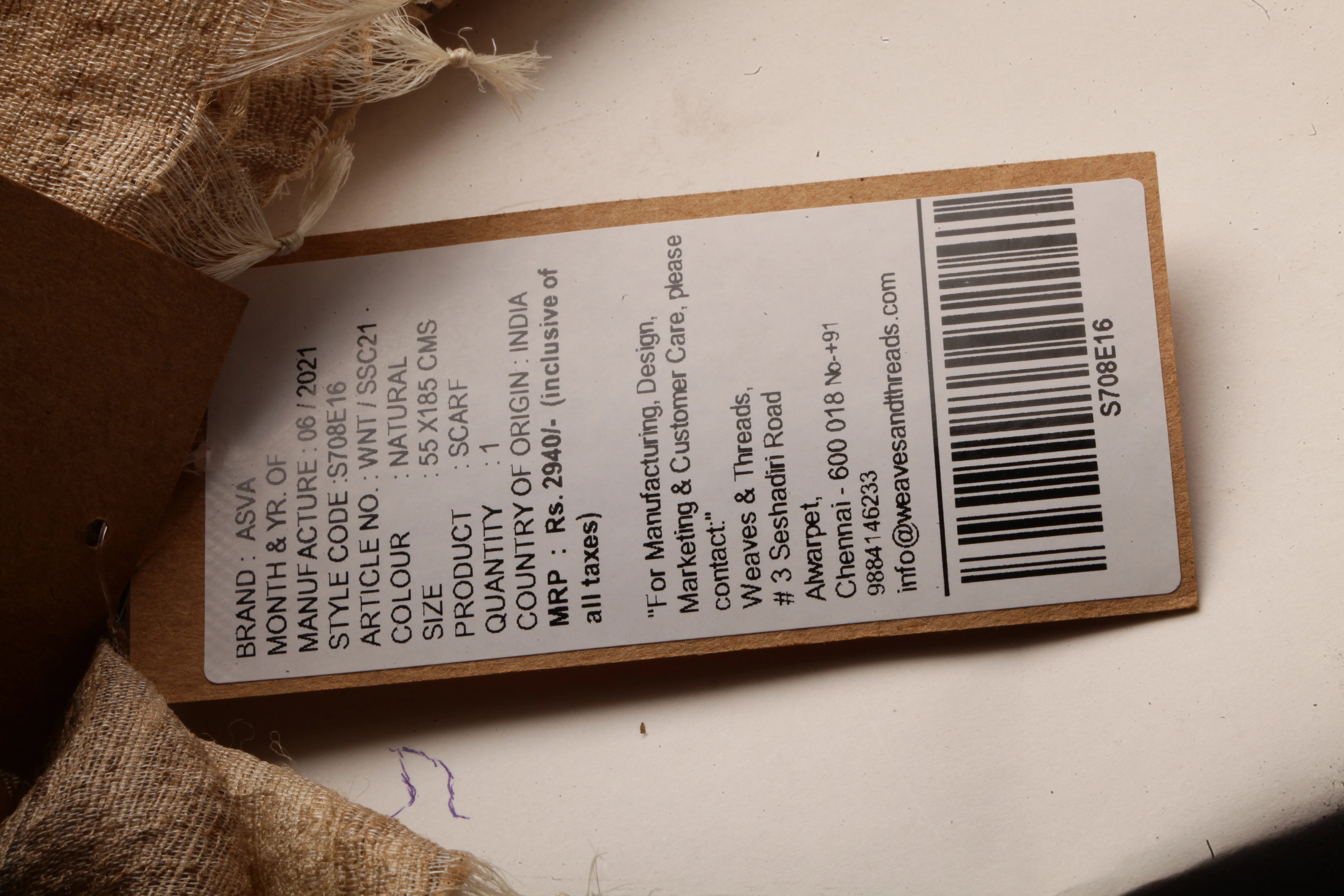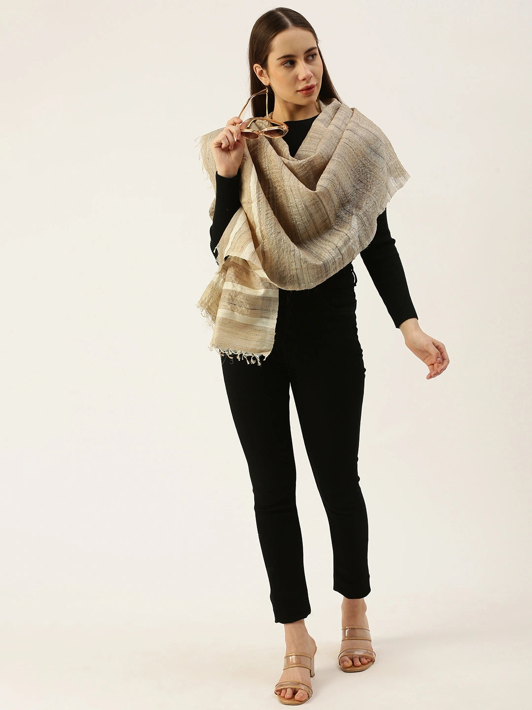 ASVA Women's Tussar Silk Scarf with White Stripes and Tassels