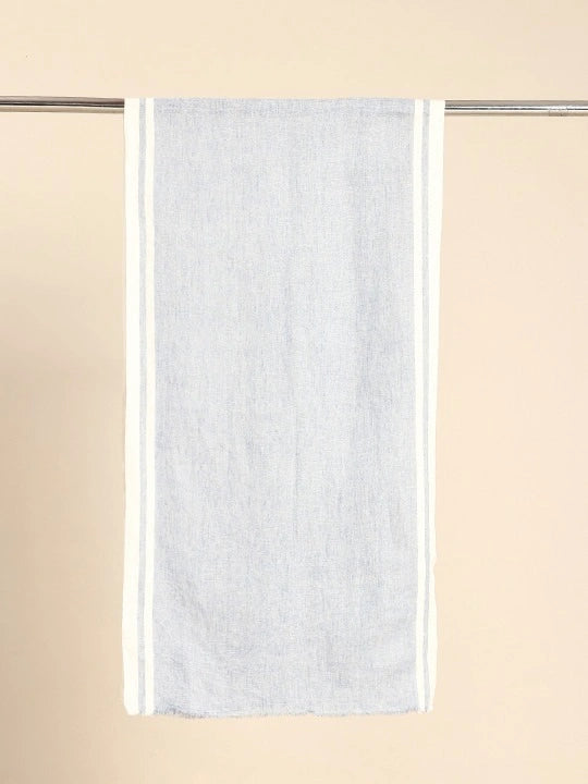 Linen Scarf with striped border. Elegantly designed and developed to uplift any outfit. A perfect unisex piece for any season.