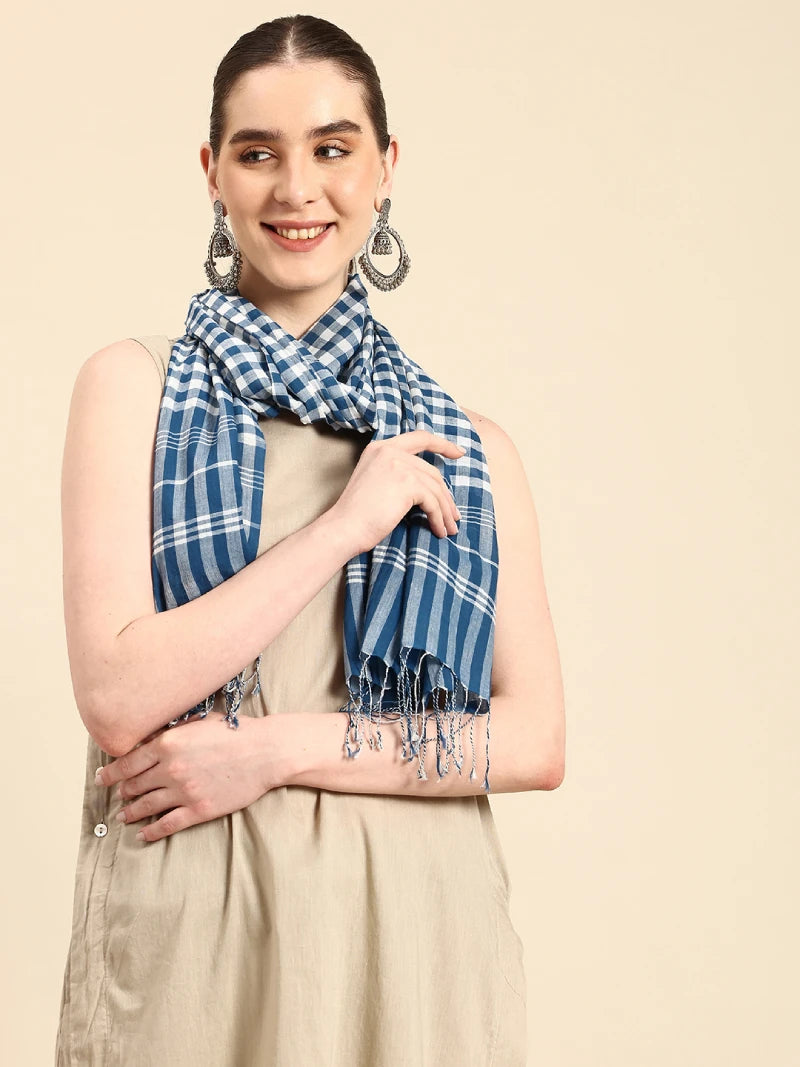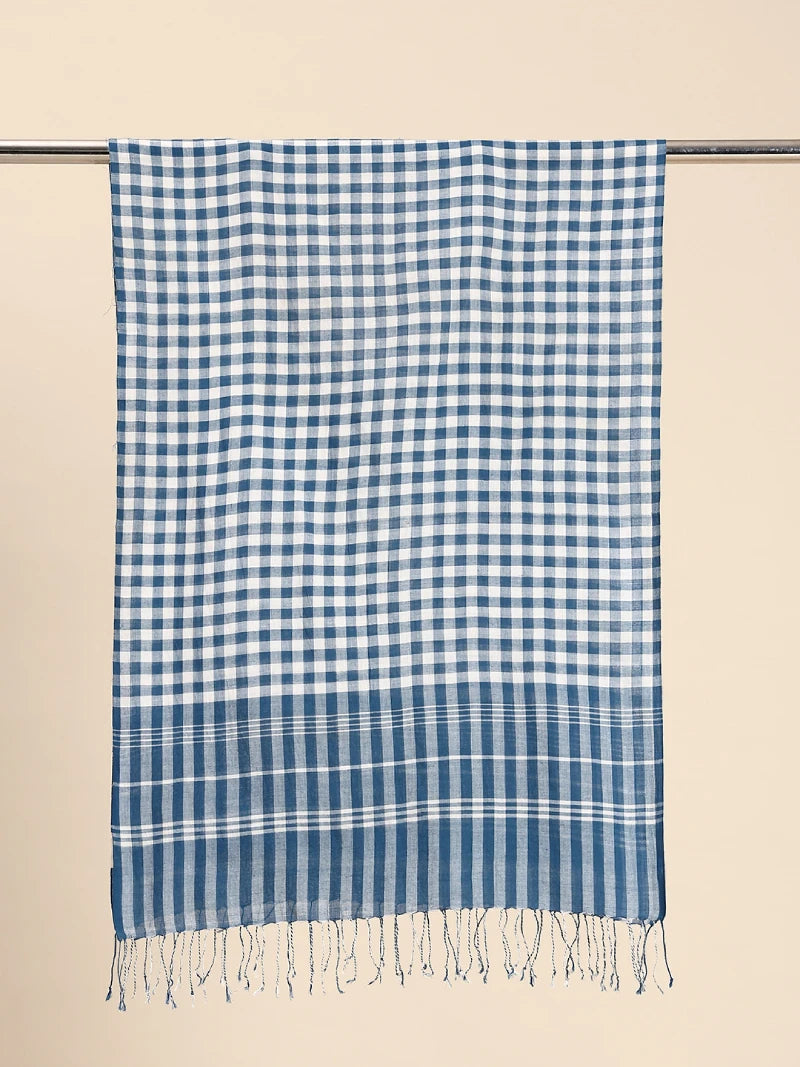 Handmade Luxurious Fine Cotton Scarf With Woven Checks.