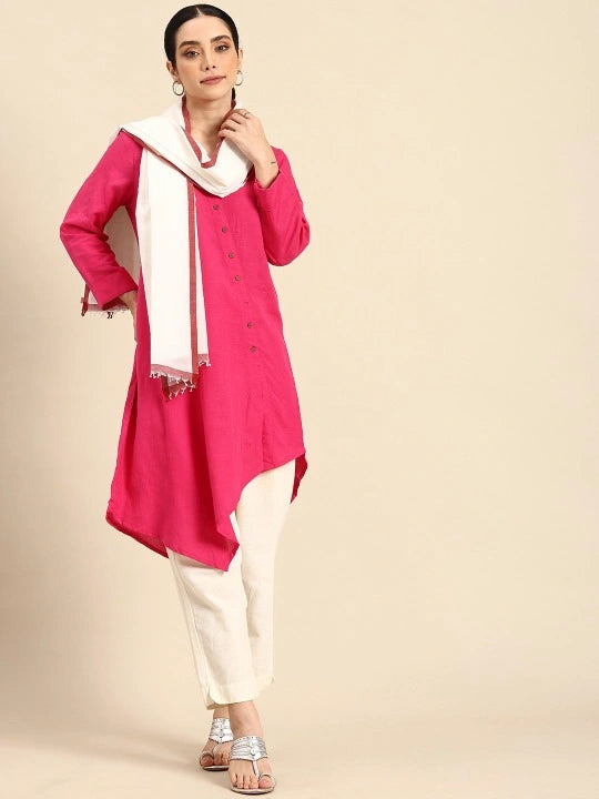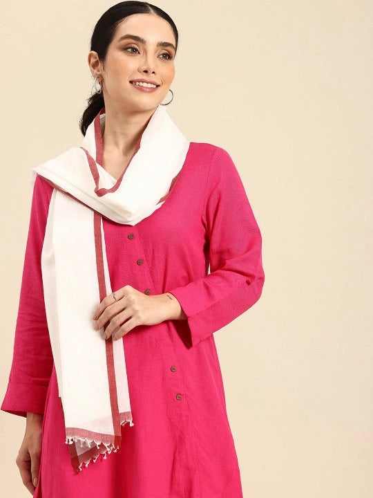 Handmade luxurious super fine organic cotton Scarf with coloured border.