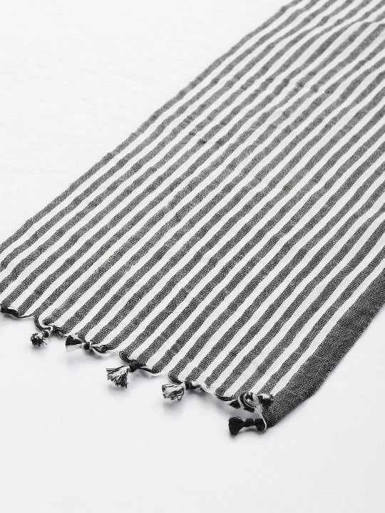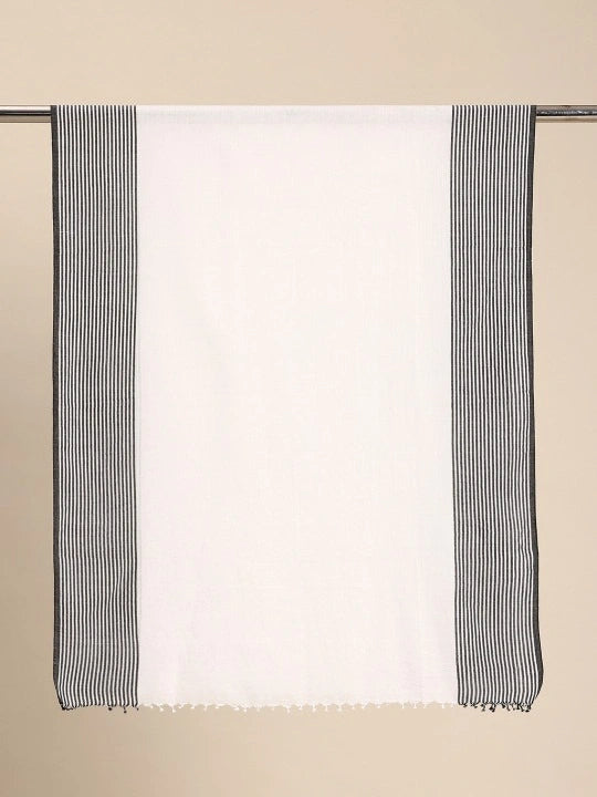 Handwoven White Cotton Scarf with Black Stripes on Both Sides