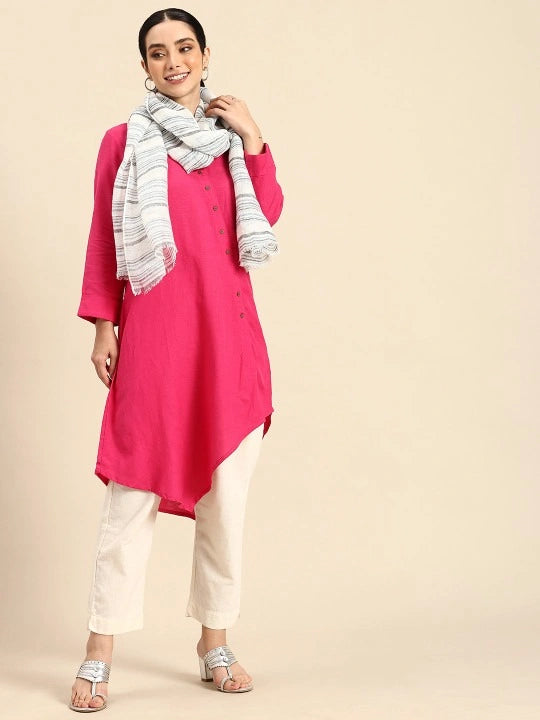 Linen Scarf in blue & grey stripes all over. Elegantly designed and developed to uplift any outfit. A perfect unisex piece for breezy summer