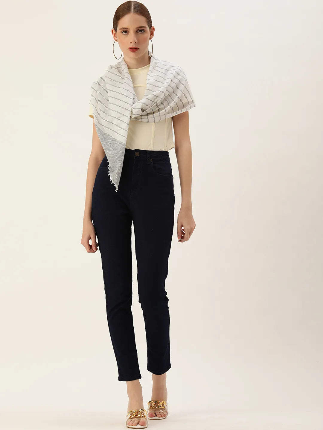 Handwoven White Scarf with Black Striped Cotton Scarf