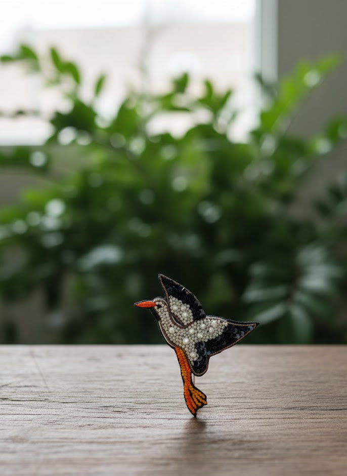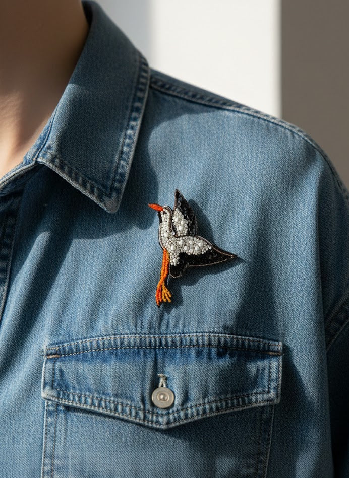 Inspired by the elegance of the flamingo, this hand-embroidered brooch features delicate beadwork, shimmering accents, and a beautifully sculpted silhouette. Designed to reflect the bird’s graceful posture and charm, it adds a pop of sophistication to jackets, sarees, bags, and scarves. A perfect accessory for those who love vibrant, artistic, and handcrafted pieces.